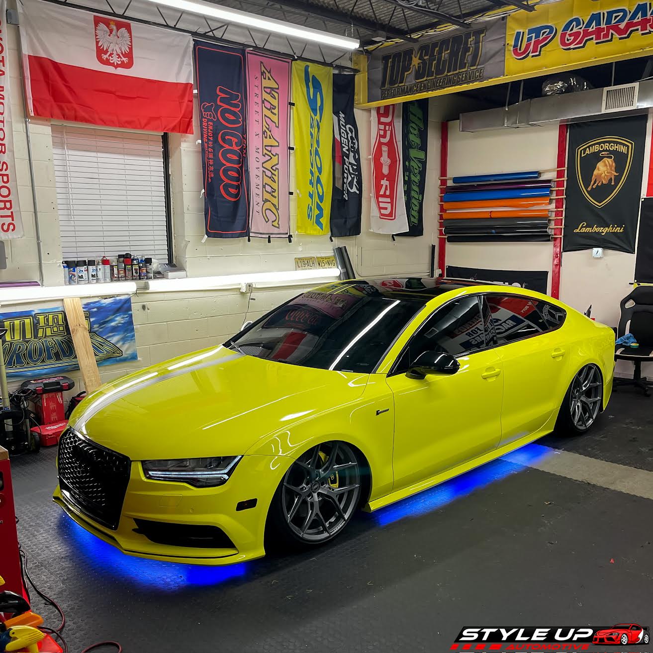 Full Color Change Wrap, Racing Stripe, Powdercoated Wheels & Under Glow Install - 2017 Audi A7